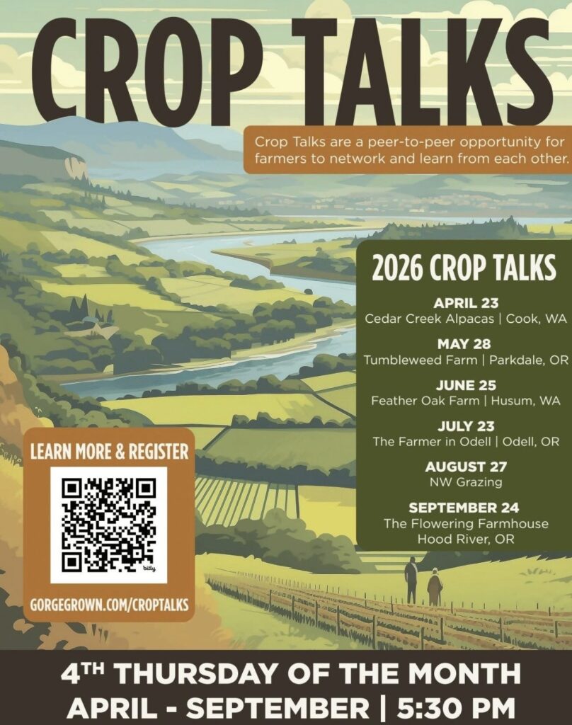 Crop Talks start on April 23rd, and are organized by the Gorge Grown Food Network and Underwood Conservation District. They offer a networking opportunity for farmers and producers in our area.